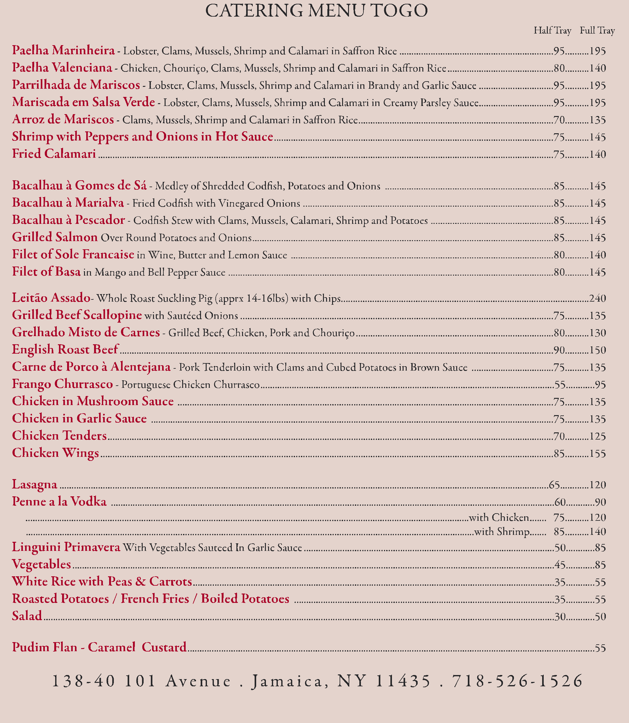 If you are having an event, but don't have the time to cook, let O Lavrador delight your palate with great selections from our CATERING MENU TOGO